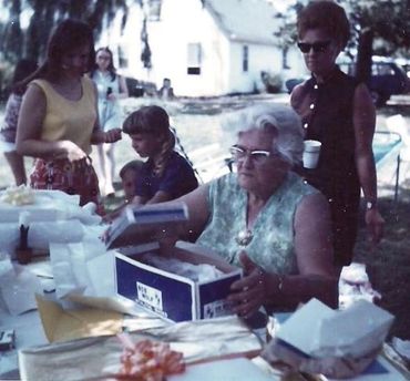 I remember her birthday parties; the whole family would come. Early on they were held at Aunt Shirley and Uncle Woody’s farm in Oxford, then in later years they were in the front yard of her apartment on Nilles Rd. Many times, family from out of state would make the trip.
